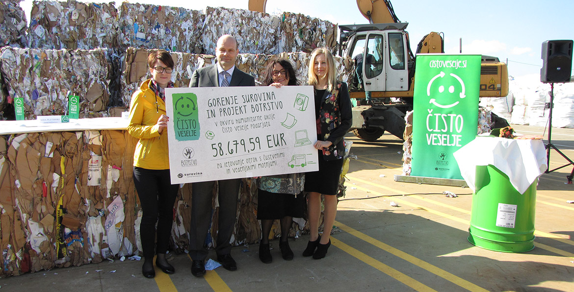 “Čisto veselje” (‘Clean fun’) is a pan-Slovenian charity campaign for the collection of waste raw materials. Surovina d.o.o. cooperates with the Slovenian Association of Friends of Youth in the “Botrstvo” project with the objective to help. The “Čisto veselje” campaign raises awareness of the meaning of nature conservation and at the same time encourages people to help children with emotional and behavioural disorders.